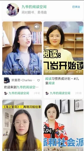 “于我而言,讀書是生活的一部分,如同吃飯睡覺是生活的樂趣……”2021年4月15日,九爺在個人微信視頻號“九爺?shù)拈喿x空間”產(chǎn)出了第一條介紹視頻,而后陸續(xù)開始發(fā)布書籍推薦視頻,目前累積了40個作品。視頻里,九爺推薦好書,介紹文學(xué)知識也分享閱讀方法,有時她也會結(jié)合熱點話題輸出觀點,風(fēng)格平實而理性。