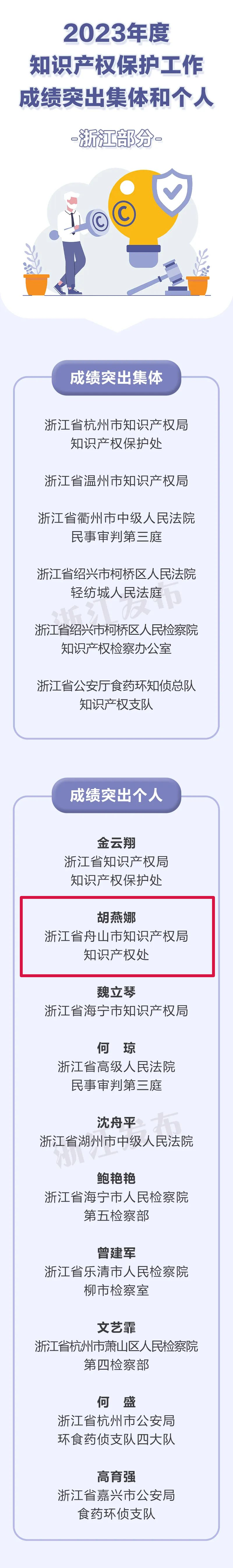 近日,國家知識產(chǎn)權(quán)局、最高人民法院、最高人民檢察院、公安部印發(fā)《關(guān)于對2023年度知識產(chǎn)權(quán)保護工作成績突出集體和個人給予表揚的通報》,對2023年度全國知識產(chǎn)權(quán)保護工作成績突出的100個集體和200名個人予以通報表揚。