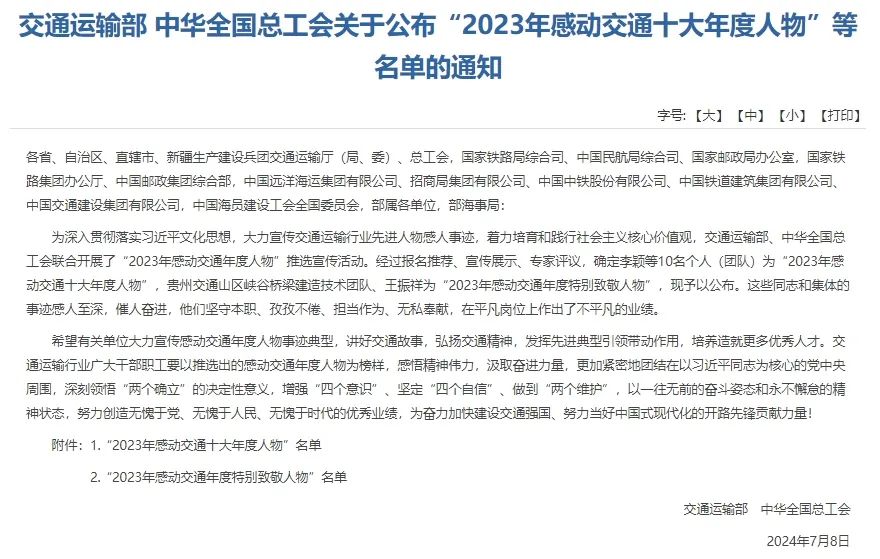 日前,交通運輸部、中華全國總工會公布了“2023年感動交通十大年度人物”等名單,其中,舟山引航站一級引航員王振祥同志被列入“2023年感動交通年度特別致敬人物”名單。