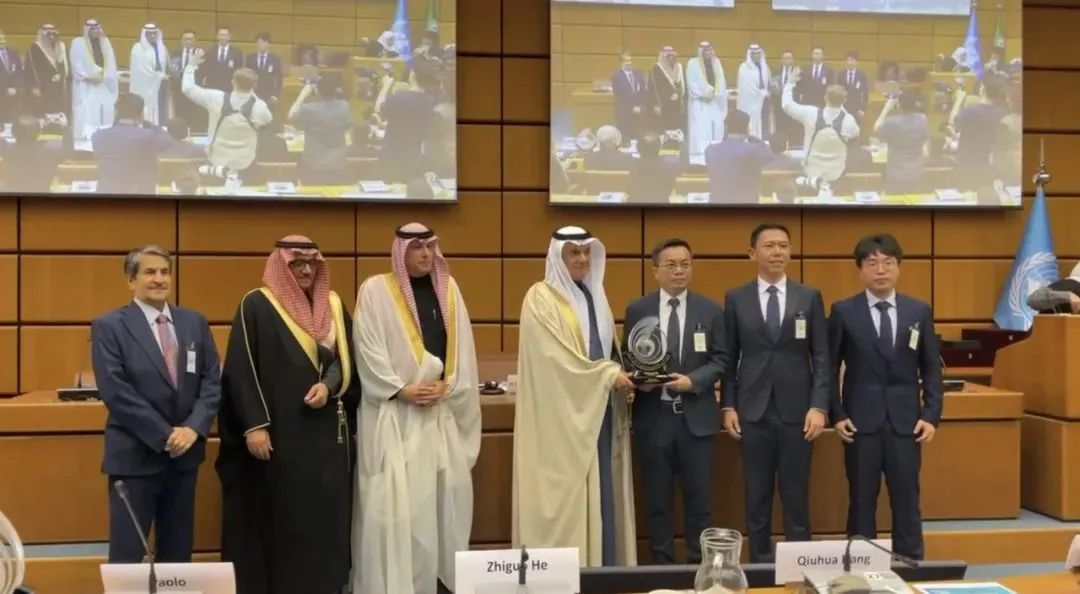 沙特阿拉伯環(huán)境、水利與農(nóng)業(yè)大臣、國際水獎理事會負責人等向賀治國教授、焦鵬程研究員、楊旸博士頒獎