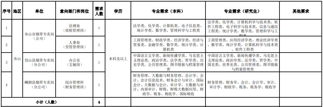 - 浙江省煙草專賣局(公司)招聘公告